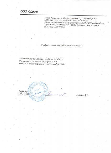 Подрядной организацией представлен график выполнения работ по строительству забора.