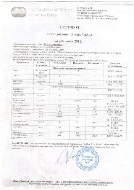 Оринки. Результаты анализа воды из скважины!
