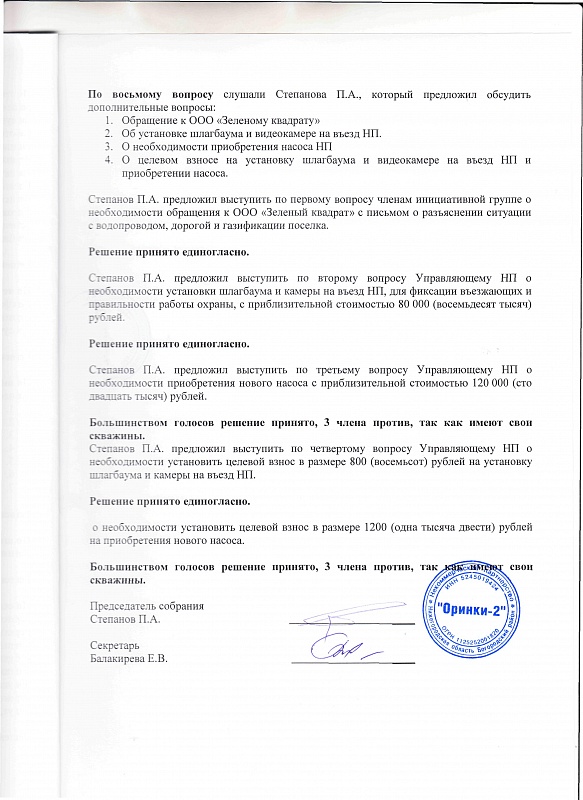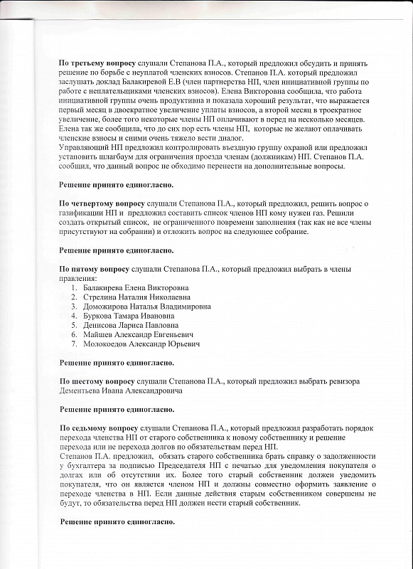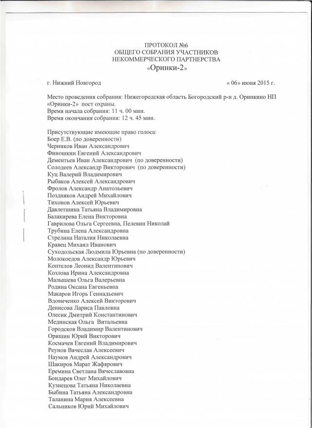 Протокол общего собрания участников некоммерческого партнерства "Оринки-2"