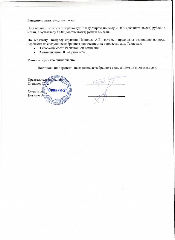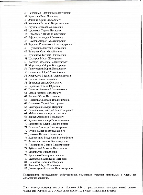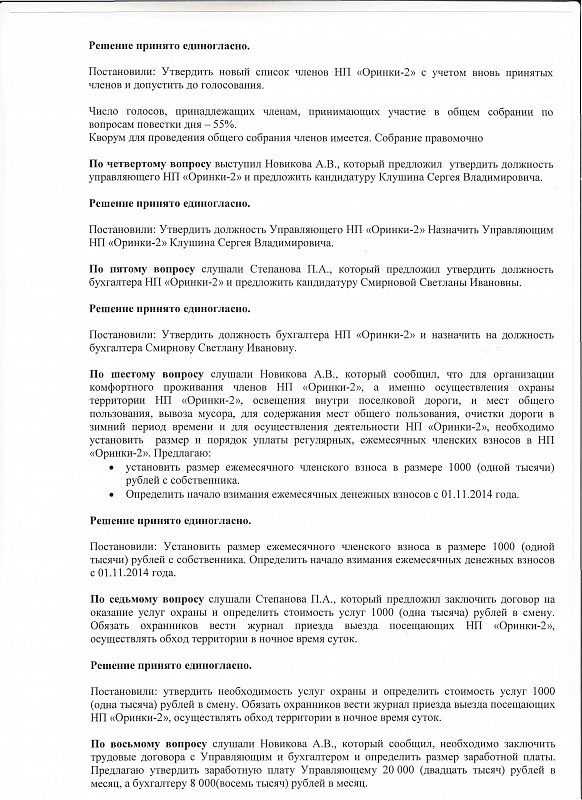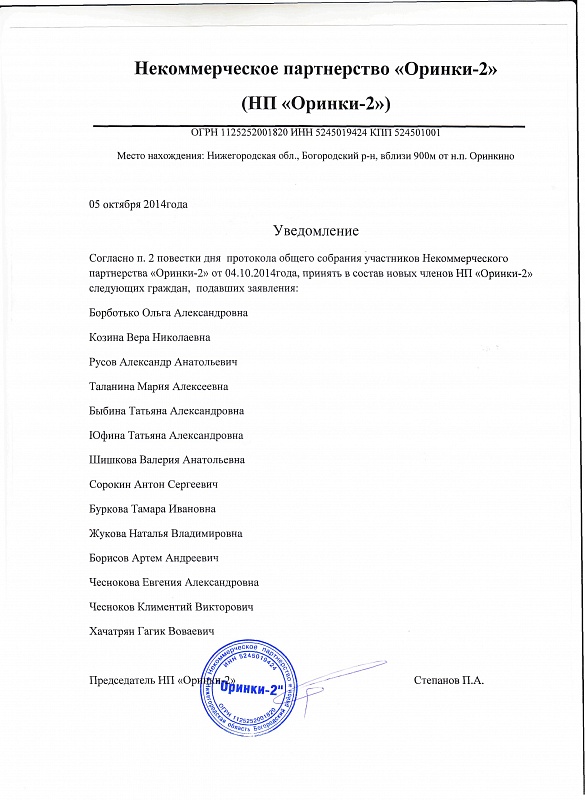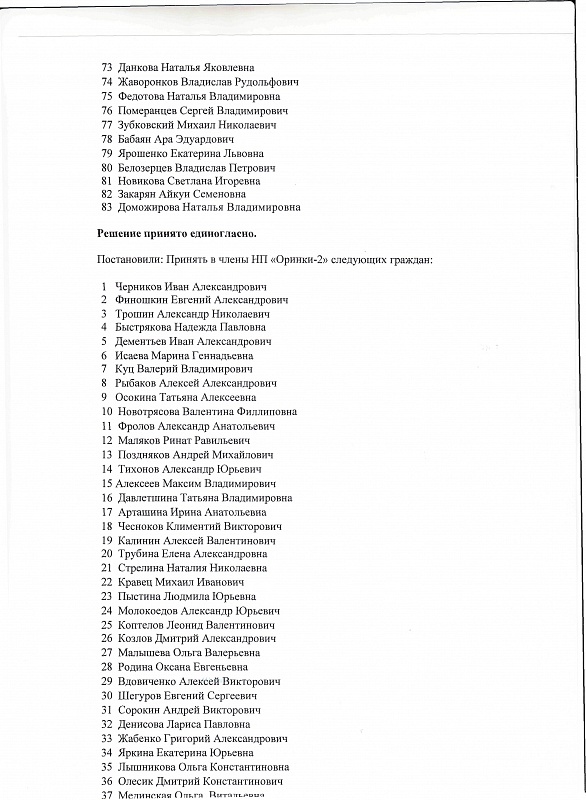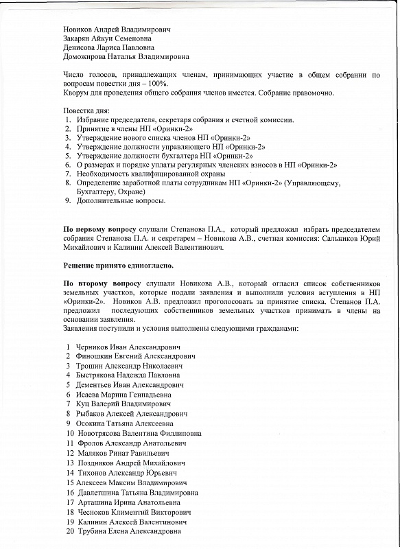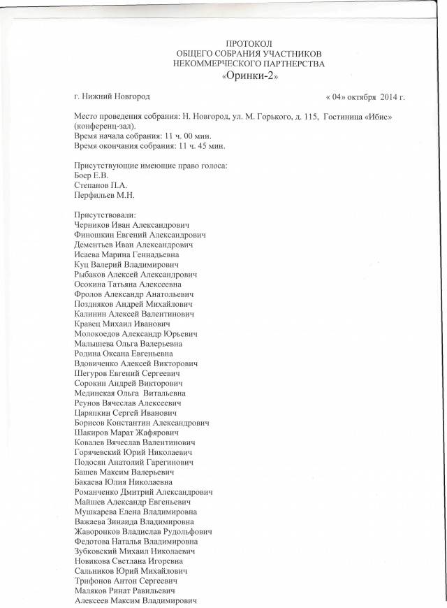 Протокол общего собрания участников НП Оринки 2
